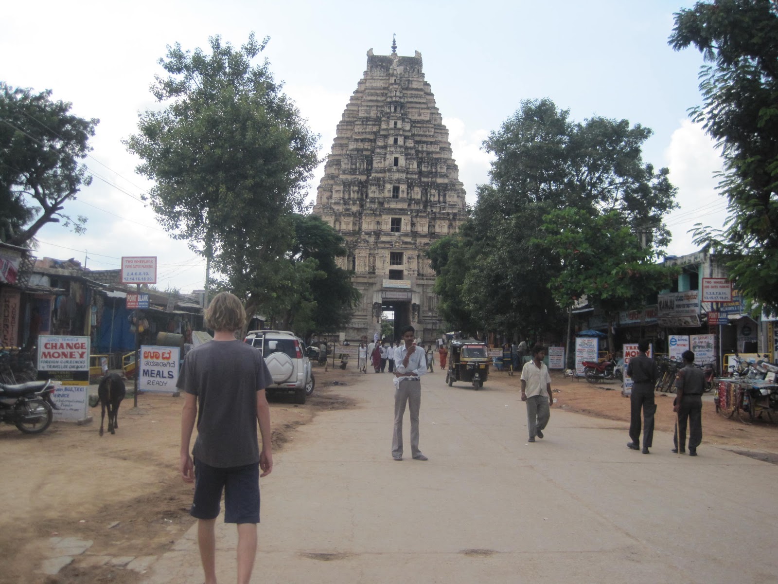 But after we got a room and took a wander into the village, we realised why this place was so special. We walked through the streets, stepping around goats and cows, into the main bazaar, only to be suddenly confronted by the majestic Virupaksha Temple, which stood proud at the end of the road. As we moved closer to take a look at the beautiful architecture, we saw some brown furry things running around the statues. Thinking they were rats at first, I jumped back, but I soon realised that they were monkeys, some with babies clinging onto them!